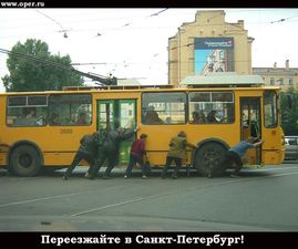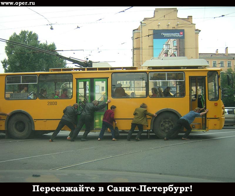 Сам толкал когда-то на остановке Спортивная. Пассажирки остались в салоне, а пассажиры вышли и подтолкнули троллейбус на пару метров вперёд, через мёртвую зону, пока "рога" не нащупали контакт. Почему водила не проехал эти несколько метров на батареях троллейбуса, при помощи которых машины паркуют в депо - непонятно. Вероятно, севшие они были, батареи-то.