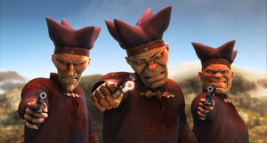 Что-то мой комент про РДГ "Упырь" не пропустили. А реально ведь правый похож на Угрюмого, левый на Крюгера, а центровой на Кабана :)