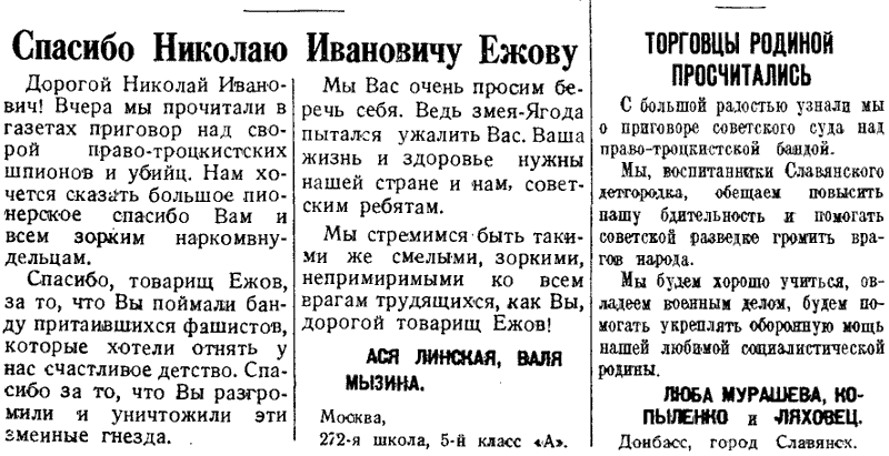 Спасибо товарищу Ежову!