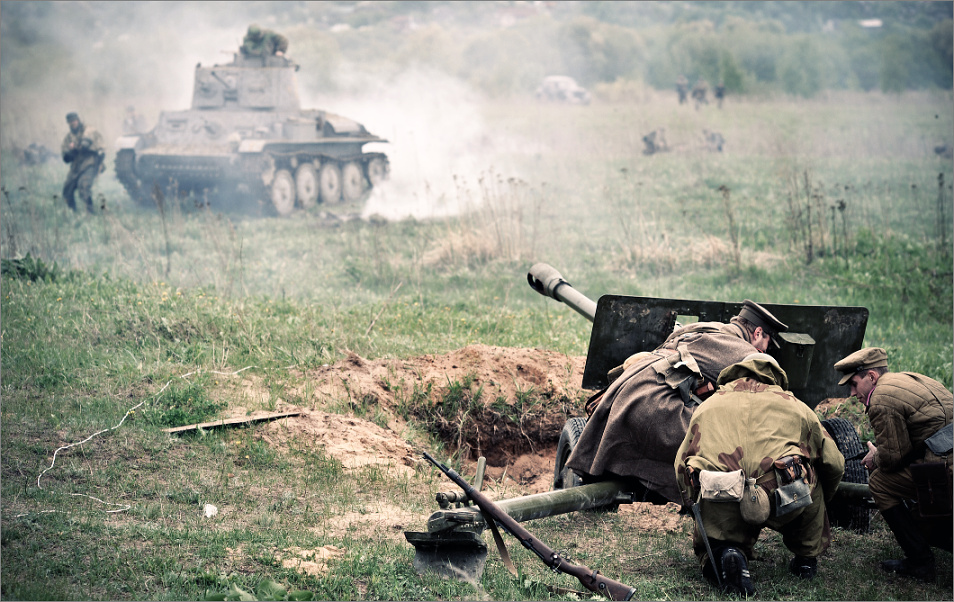 Вспоминая гранит науки "О противотанковой артиллерии....." и глядя на фотку, на таком расстоянии выстрела расчет в реальности уже был бы на том свете.....а так оч. даже фпечатлило:) я бы и сам непрочь в таком поучаствовать