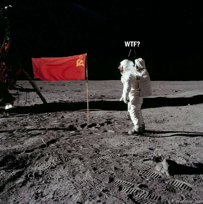 > Декораторы прикололись, в съёмочном павильоне "луна" - советский флаг.