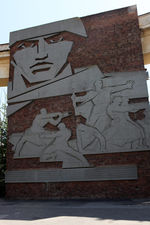 А что за надпись там была? Сейчас остались только следы на кирпиче. "53" и еще слово "огне". справа сверху стены.