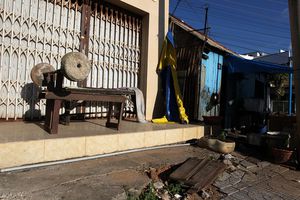Тот, кто хочет - ищет возможности, кто не хочет - причины. Бетонная штанга вызывает искреннее уважение к неведомому бодибилдеру.