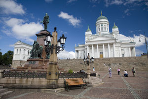 Недалеко от этой площади стоит православный Успенский собор, который в сравнении с католическим Туомикиркко, который на фотке,выглядит более чем достойно.