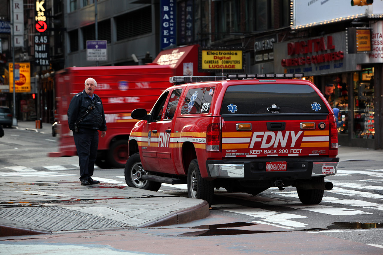 Судя по тому, что на машине знак медслужбы, предполагаю, что пожарник оказывает первую помощь пострадавшим.