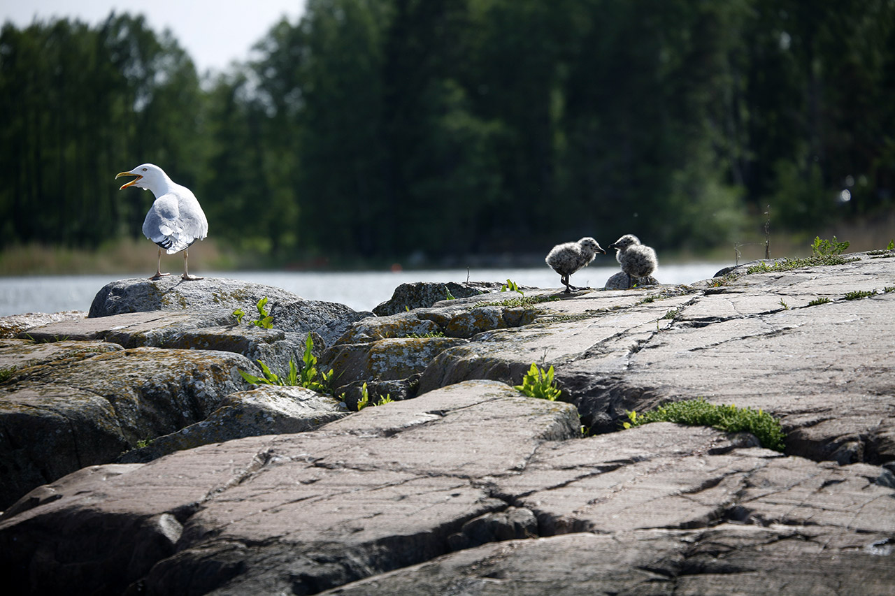 Чайка с птенцами