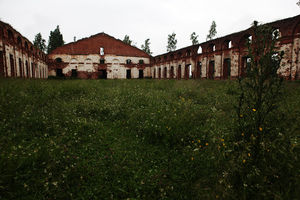 В Лиепае/Либаве в Военном городке такие же стены манежа сохранились.При попадании внутрь оных изрядно обалдеваешь от грандиозности и монументальности сооружения.На фотке (к большому огорчению) это не очень хорошо чувствуется.