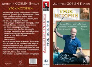 На обложке Гоблин показует, как кровавый диктатор на заднем плане дотягивается до школяров и вбивает в тупые бошки правильный контент.